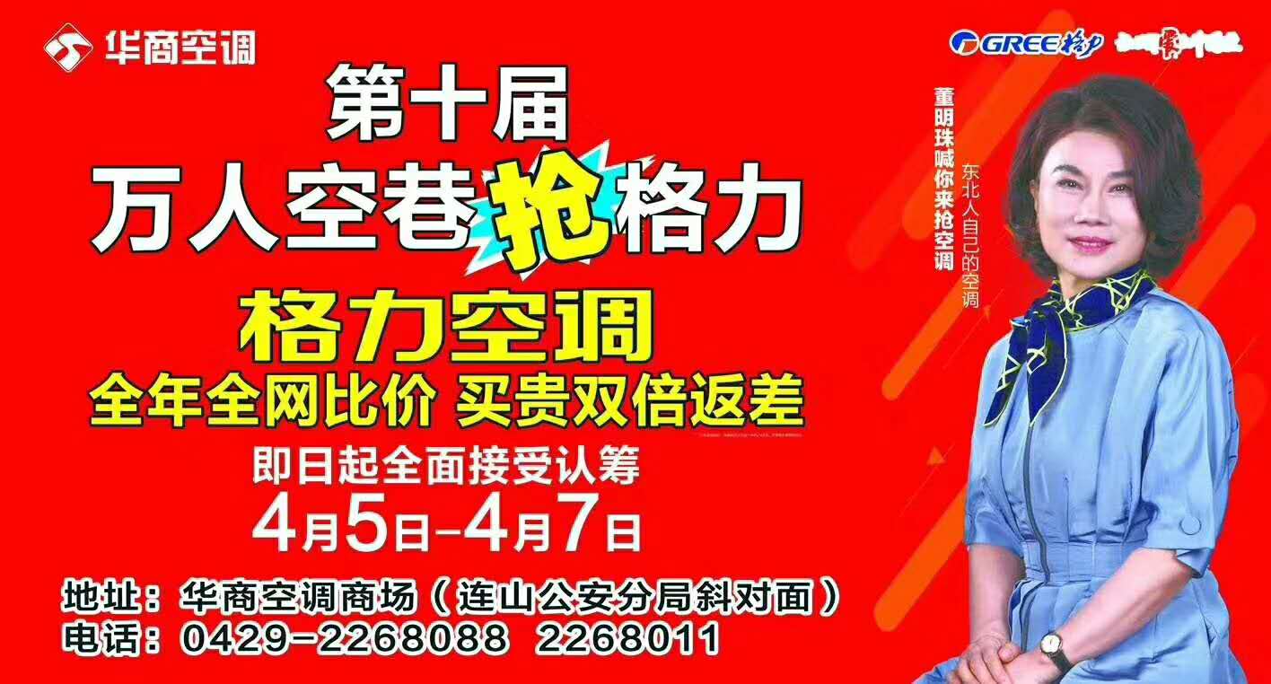 華商空調(diào)第十屆“萬人空巷搶格力”活動正在火爆進行中。!本次活動全網(wǎng)全年比價,買貴雙倍返差,超級優(yōu)惠。格力廠家還推出了東北定制機,特別贈送價值298元的五糧液十周年紀(jì)念酒,至尊服務(wù),享受整機包修10年!四月買空調(diào),買的便宜安的快,保證您在炎炎夏日享受清涼與舒適。感恩廣大市民對華商空調(diào)的信任與支持,華商空調(diào)時刻關(guān)心您的冷暖,大家趕緊來買咱東北人自己的空調(diào)吧。!